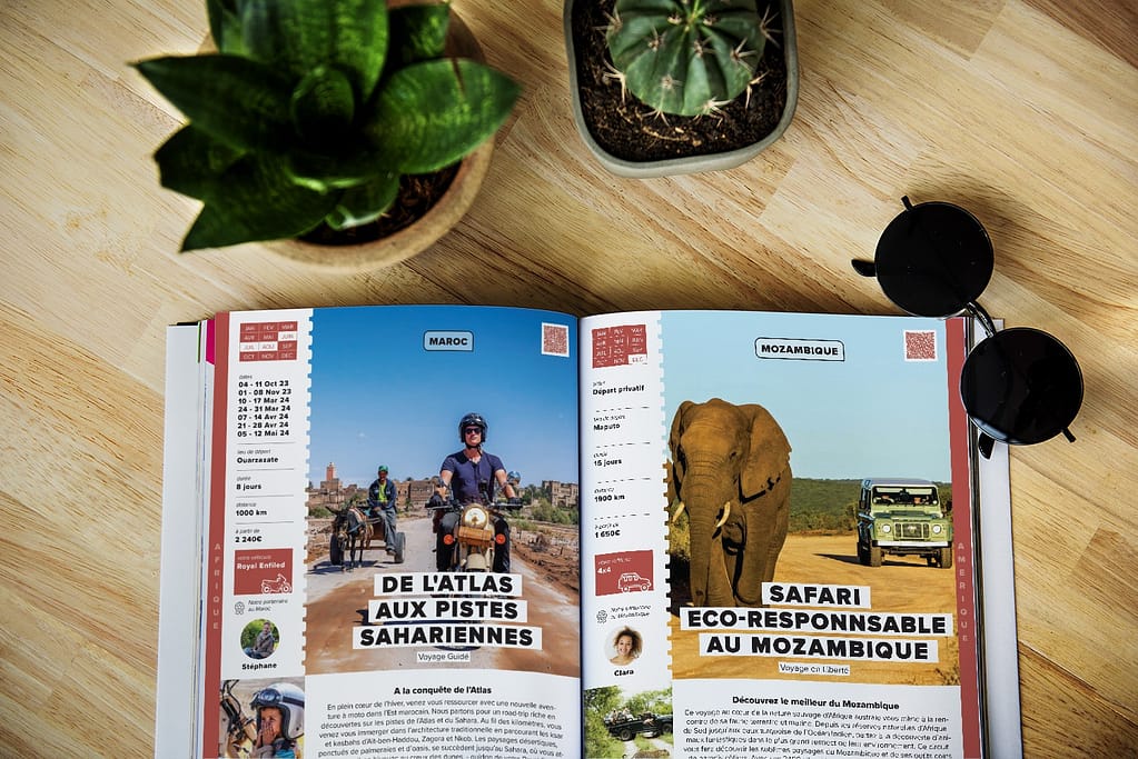 Nous sommes fiers de vous présenter notre tout premier catalogue, composé comme un carnet de route, à l’image de la conception que nous nous faisons du voyage : un créateur d’histoires, d’aventures et de souvenirs.