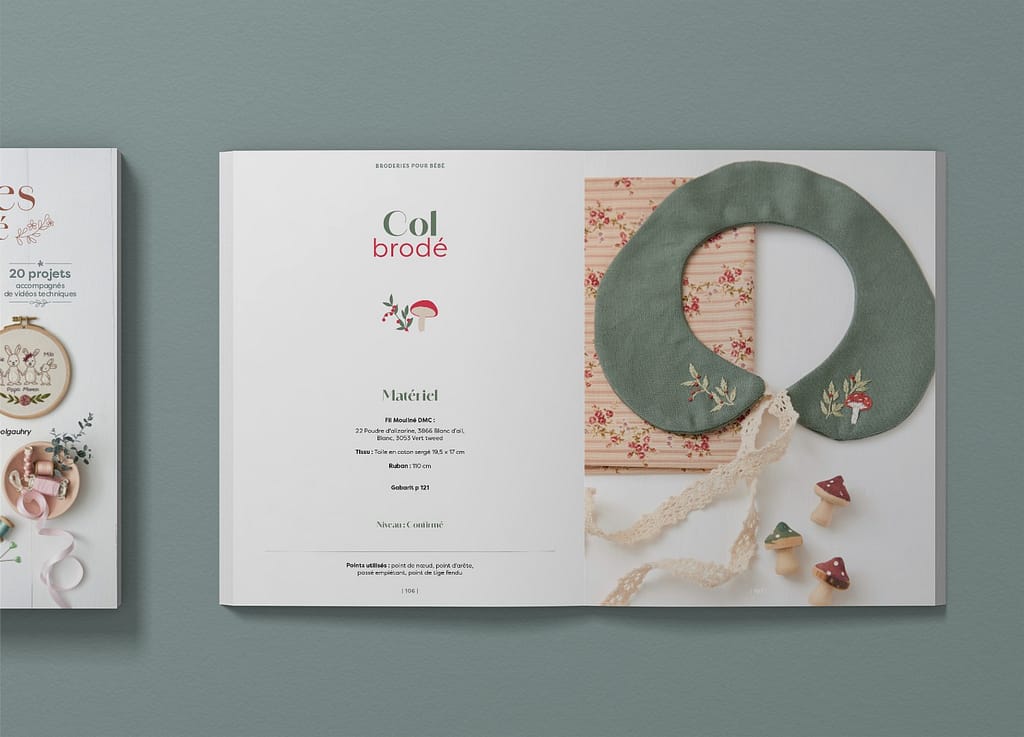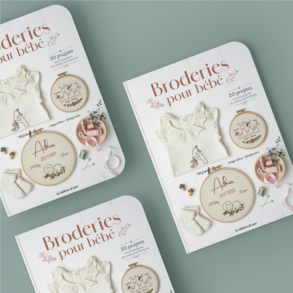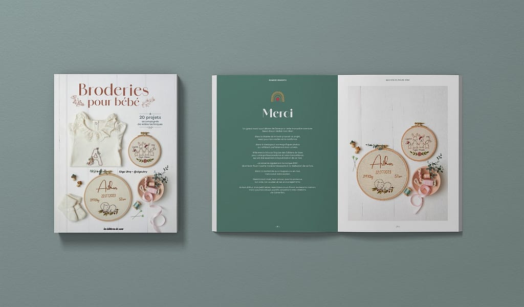 Mise en page d’un livre pour les Editions de Saxe. Broderies pour bébé par Olga Uhry.