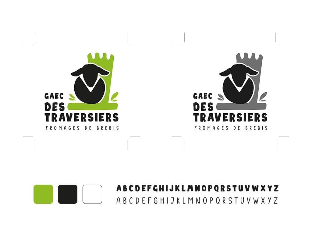 Conception et réalisation de l’identité visuelle des Traversiers, artisan fromager bio.